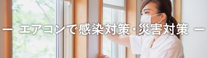 保育所や介護施設、病院の感染・災害をエアコンで守る! 換気、空気清浄機能付きエアコンやGHPなど数あるエアコンの中からお客様に合った1台をご提案 |