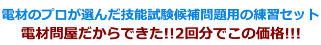 第二種電気工事士の資格取得を考えている方へ 第二種電気工事士は電気も含めいろいろな方面で活躍するために基本となる、電気の基礎知識満載の試験です。また、電気の実際が良く理解でき、電気配線の仕方もしっかり学べますので、お仕事に役立つこと間違いありません。もし、受験しようとするならば、できる限り早く受験し、ためしに受けてみようではなく1年で合格する積りで頑張りましょう。電気機器の設計、企画、販売はもちろんのこと、建設関係でも、弱電関係でも、土木でも、電気のことを知りたいなら、この資格を持つべきです。電線以外の材料は1回分をご用意、2回目以降は再使用を基本としていますが、使用頻度の多いもの(ジョイントボックス/レセプタクル/埋込連用取付枠/ゴムブッシング/電線コネクタ等)については増量を行いました。また、使いきりの「リングスリーブ」は2回分同梱してあります。※商品の販売は終了しています