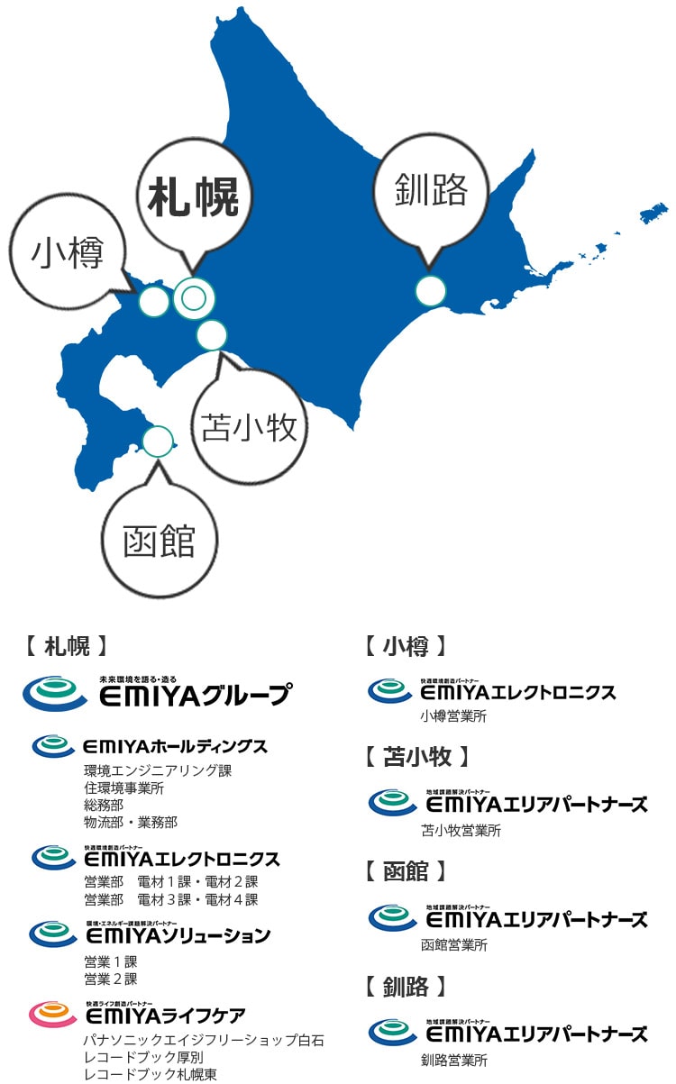 ■営業職・内勤業務 ・小樽営業所 ・苫小牧営業所 ・釧路営業所 ・函館営業所 ※北海道へのUターン、Iターンも歓迎です |